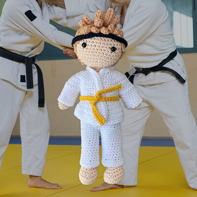 Kareltje staat klaar om zijn technieken te verbeteren in de judo sport. Hij heeft nu nog de gele band, maar hopelijk mag hij snel de volgende in ontvangst nemen.